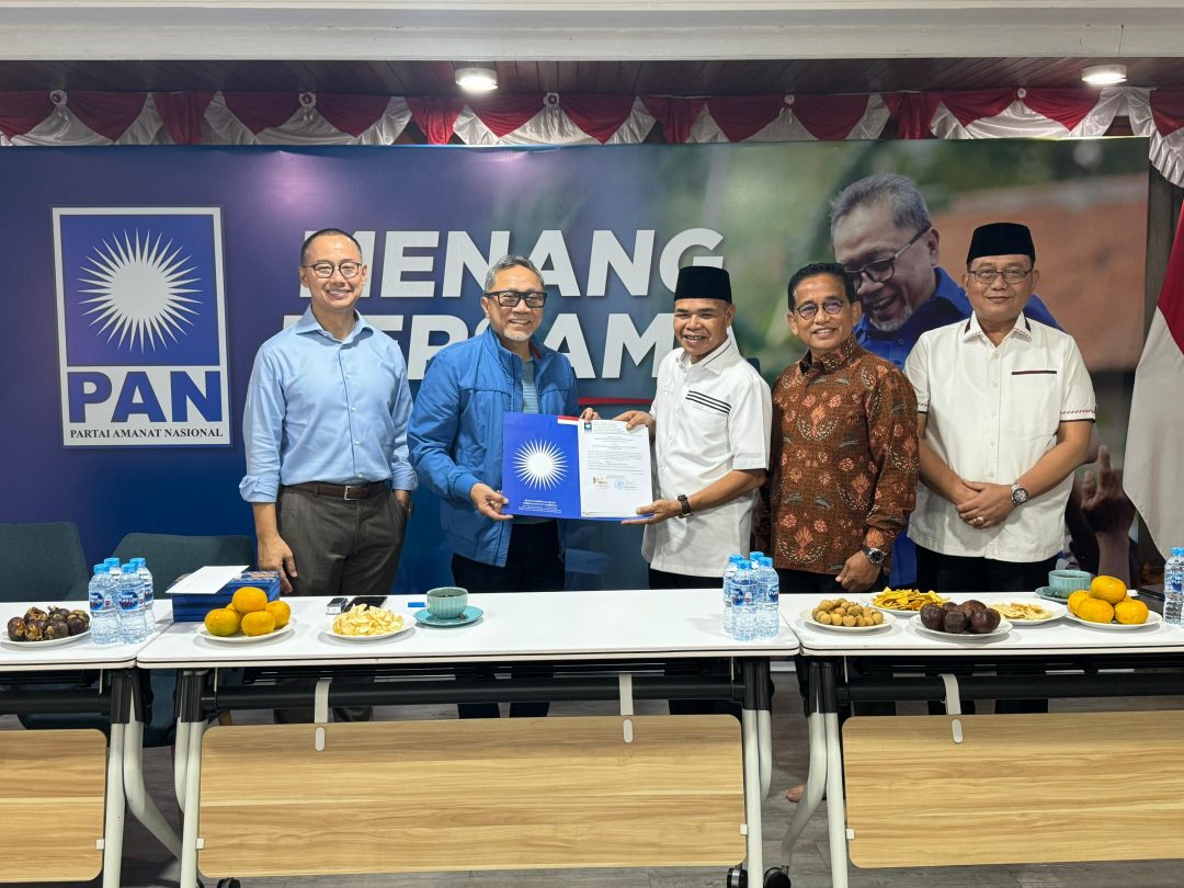 Surat Keputusan DPP PAN ini diserahkan langsung oleh Ketum PAN, Zulkifli Hasan (Zulhas) di dampingi Ketua DPW PAN Prov Jambi, H Bakri kepada pasangan AsTon.
