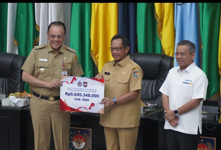 JambiOtoritas.com, TEBO – Pemerintah kabupaten Tebo satu- satunya daerah dalam provinsi Jambi yang menerima insentif fiskal dalam rangka pengendalian inflasi didaerah dari pemerintah pusat melalui kementrian keuangan. Penyerahan penghargaan untuk kabupaten Tebo tersebut, diserah melalui kementerian dalam negeri, Senin (5/8/2024) Pj. Bupati Tebo, DR. Varial Adhi Putra menerima secara simbolis penghargaan itu yang diserahkan langsung oleh menteri dalam negeri, Tito Carnavian di Jakarta.