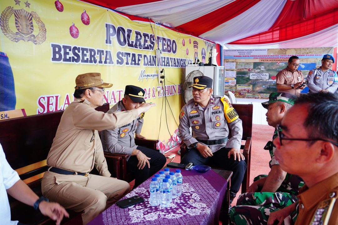 JambiOtoritas.com, TEBO – Memastikan kesiapan pengamanan dan pelayanan bagi masyarakat selama perayaan Natal 2024 dan Tahun Baru 2025, Penjabat (PJ) Bupati Tebo, Dr. H. Varial Adhi Putra, S.T., M.M., bersama Forum Koordinasi Pimpinan Daerah (Forkopimda) Kabupaten Tebo melaksanakan pengecekan Pos Pelayanan dan Pos Pengamanan di wilayah hukum Kabupaten Tebo, Senin (30/12/2024).