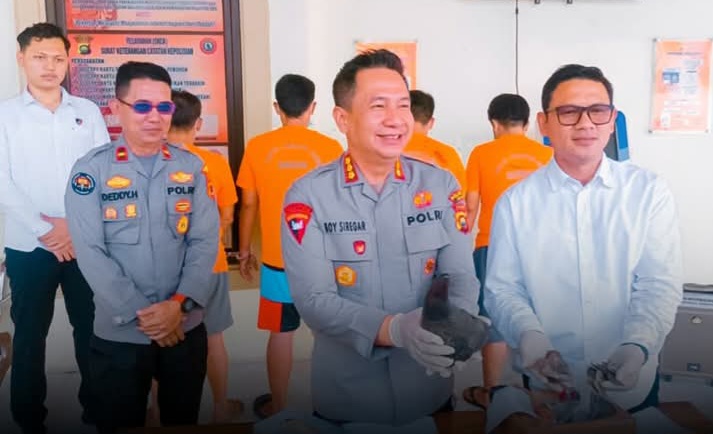 Kapolresta Jambi melakukan jumpa Pers dalam pengungkapan kasus perdagangan ilegal sisik trenggiling dan cula badak dikota Jambi/foto humas Polda