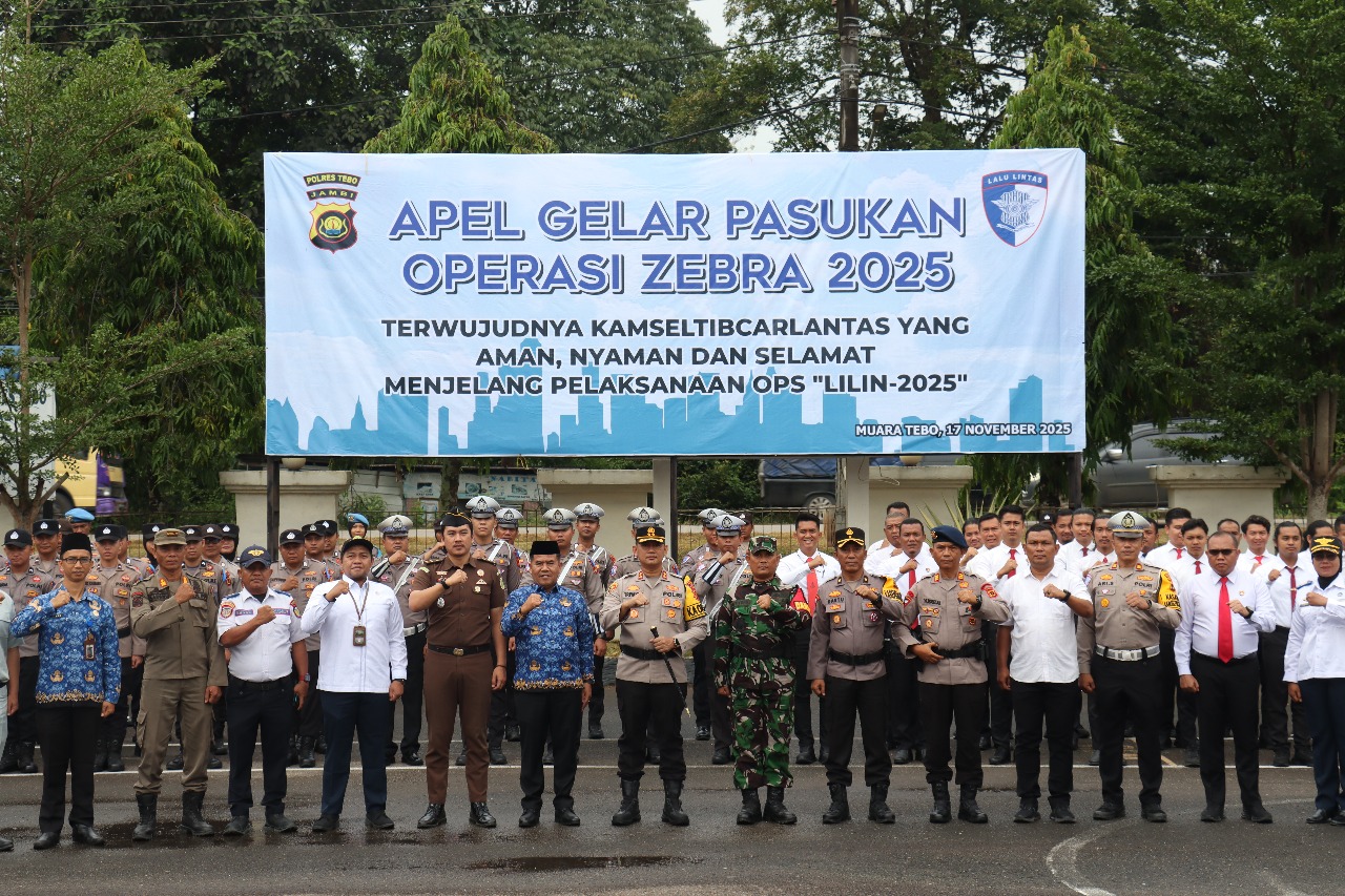 Kapolres Tebo, Triyanto menegaskan Polri berkomitmen penuh menjaga keamanan, keselamatan, ketertiban, dan kelancaran lalu lintas di wilayah Kabupaten Tebo. Operasi Zebra Siginjai 2025 menjadi langkah strategis untuk mengantisipasi gangguan dan potensi kecelakaan sekaligus mempersiapkan pra-kondisi menjelang Operasi Lilin 2025.
