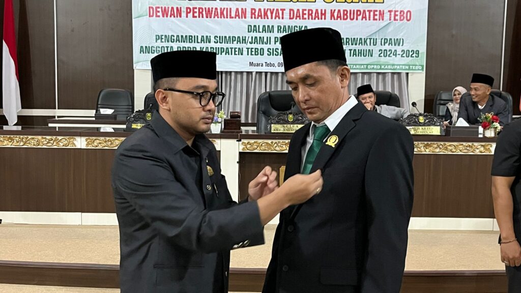 Sementara itu, Wakil Bupati Tebo Nazar Efendi dalam sambutannya menegaskan bahwa proses pengambilan sumpah dan janji PAW merupakan hasil dari tahapan panjang yang dilaksanakan sesuai ketentuan hukum yang berlaku. Menurutnya, pelantikan ini menjadi bagian penting dari kesinambungan tanggung jawab DPRD dalam menyerap dan memperjuangkan aspirasi masyarakat.